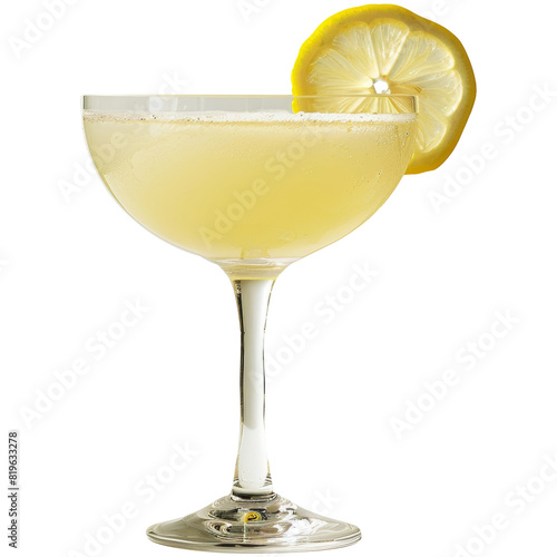 Daiquiri cocktail with lemon slice on top, transparent background