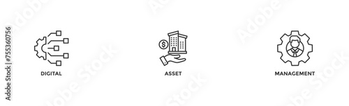 Dam banner web icon illustration concept of digital asset management with icon of binary, automation, processing, design, data, network, and connection
