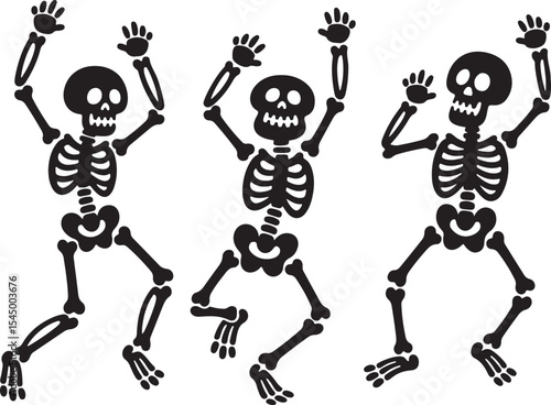 Dancing skeleton silhouette set, skeleton silhouette set, Skeletons dancing with different positions style design set vector, funny Halloween characters perfect for themed party posters vector set