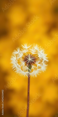 Dandelion clock against a warm golden background captures the essence of nature's fleeting beauty