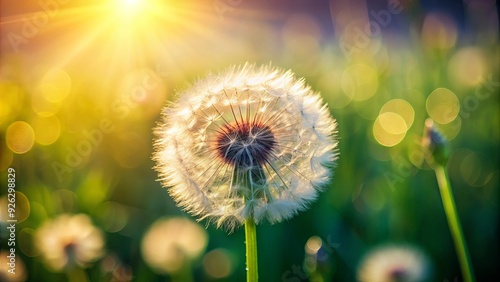 Dandelion in the sunlight, close-up shot with soft focus