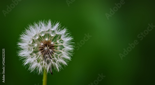 Dandelion Seed Head Against Green Background Ready to Take Flight