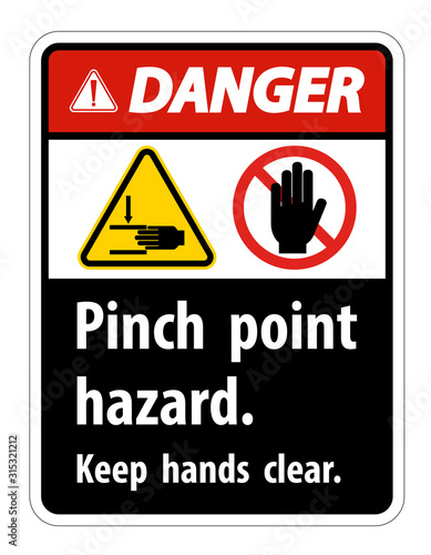 Danger Pinch Point Hazard,Keep Hands Clear Symbol Sign Isolate on White Background,Vector Illustration