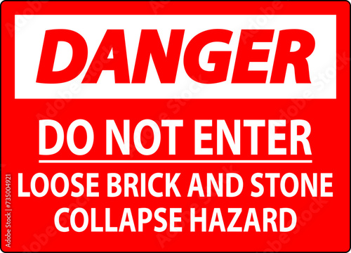 Danger Sign, Do Not Enter, Loose Brick And Stone Collapse Hazard