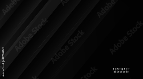 Dark abstract background with black overlap layers. Modern dark luxury geometric texture with shadow. Minimalist design for poster, flyer, cover, advertising, banner. Vector illustration