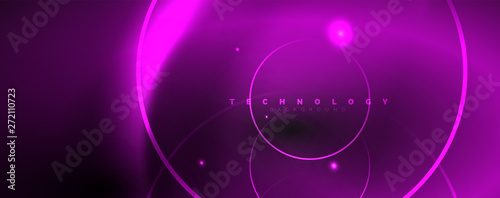 Dark abstract background with bright color neon lights and lines. Glowing background