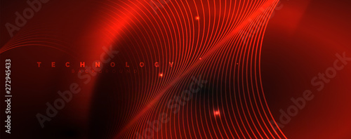 Dark abstract background with bright color neon lights and lines. Glowing background