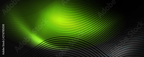 Dark abstract background with bright color neon lights and lines. Glowing background