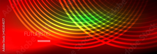 Dark abstract background with glowing neon circles. Trendy layout template for business or technology presentation, internet poster or web brochure cover, wallpaper