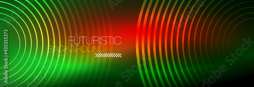 Dark abstract background with glowing neon circles. Trendy layout template for business or technology presentation, internet poster or web brochure cover, wallpaper
