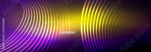 Dark abstract background with glowing neon circles. Trendy layout template for business or technology presentation, internet poster or web brochure cover, wallpaper
