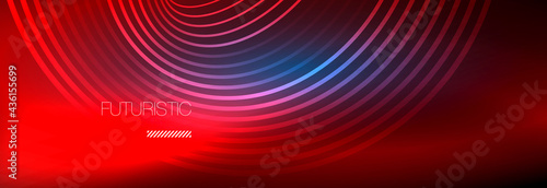 Dark abstract background with glowing neon circles. Trendy layout template for business or technology presentation, internet poster or web brochure cover, wallpaper