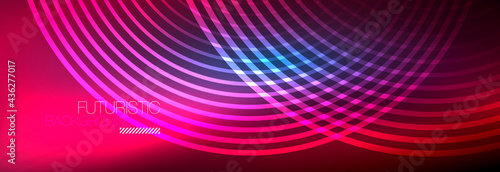Dark abstract background with glowing neon circles. Trendy layout template for business or technology presentation, internet poster or web brochure cover, wallpaper