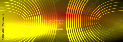 Dark abstract background with glowing neon circles. Trendy layout template for business or technology presentation, internet poster or web brochure cover, wallpaper