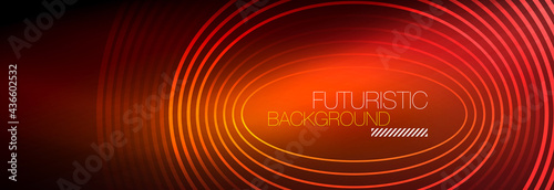 Dark abstract background with glowing neon circles. Trendy layout template for business or technology presentation, internet poster or web brochure cover, wallpaper