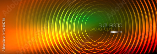 Dark abstract background with glowing neon circles. Trendy layout template for business or technology presentation, internet poster or web brochure cover, wallpaper