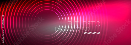 Dark abstract background with glowing neon circles. Trendy layout template for business or technology presentation, internet poster or web brochure cover, wallpaper