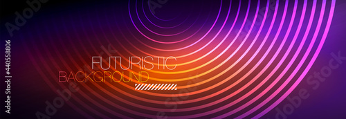 Dark abstract background with glowing neon circles. Trendy layout template for business or technology presentation, internet poster or web brochure cover, wallpaper