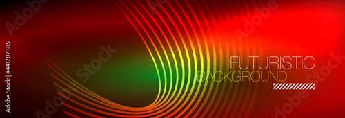 Dark abstract background with glowing neon circles. Trendy layout template for business or technology presentation, internet poster or web brochure cover, wallpaper