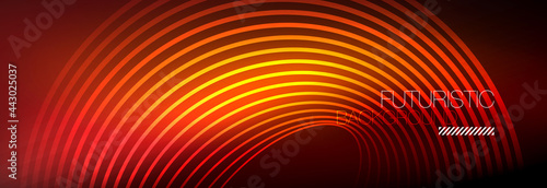 Dark abstract background with glowing neon circles. Trendy layout template for business or technology presentation, internet poster or web brochure cover, wallpaper