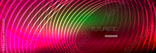 Dark abstract background with glowing neon circles. Trendy layout template for business or technology presentation, internet poster or web brochure cover, wallpaper