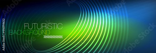 Dark abstract background with glowing neon circles. Trendy layout template for business or technology presentation, internet poster or web brochure cover, wallpaper