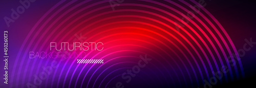Dark abstract background with glowing neon circles. Trendy layout template for business or technology presentation, internet poster or web brochure cover, wallpaper