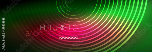 Dark abstract background with glowing neon circles. Trendy layout template for business or technology presentation, internet poster or web brochure cover, wallpaper