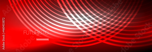 Dark abstract background with glowing neon circles. Trendy layout template for business or technology presentation, internet poster or web brochure cover, wallpaper