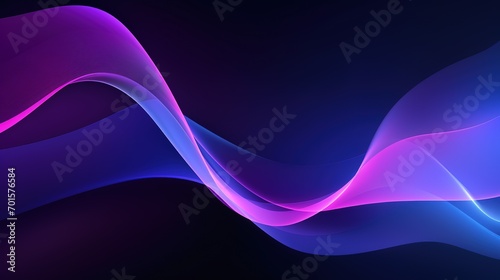 Dark abstract background with glowing wave. Shiny moving lines design element. Modern purple blue gradient flowing wave lines. Futuristic technology concept. Vector illustration. Generative Ai