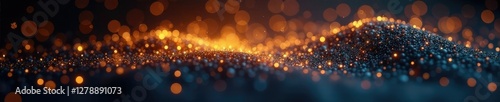 Dark abstract background with shimmering gold glitter and light, luminous, glitter