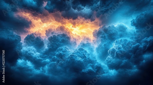 Dark and Dramatic Stormy Sky with Lightning Flashes Illuminating the Clouds in a Captivating Display of Nature's Power and Beauty