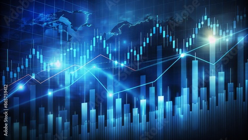 Dark atmospheric depiction of market trends unfolding within a mystical blue and navy graph, evoking an ominous sense of financial uncertainty.
