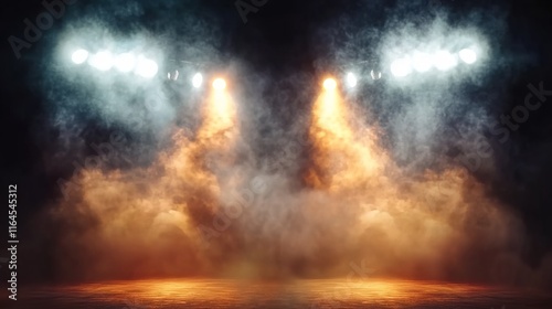 Dark background with smoke and stadium lights, a suitable background for sports events or live shows.