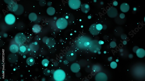 dark black background with glowing teal dots, conveying calmness and serenity akin to an underwater scene.