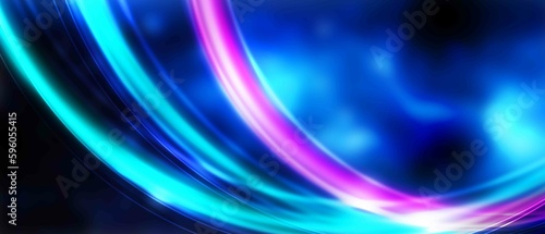 Dark blue abstract background with ultraviolet neon glow, blurry light lines, waves