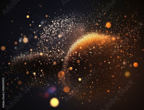 Dark blue and glow particle abstract background Blurry bokeh background with sparkles, particles and glitter created with Generative AI technology