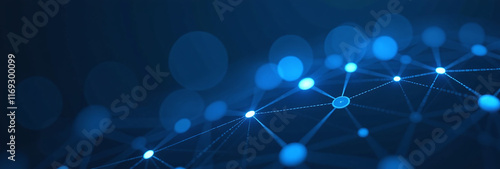 dark blue background features abstract lines connecting dots modern networking elements light circle