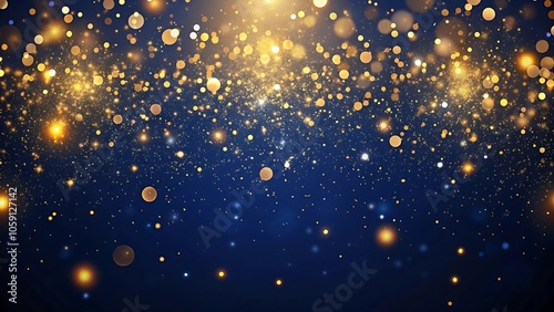 Dark Blue Background with Golden Shimmering Particles for Elegant Design and Promotional Material Use