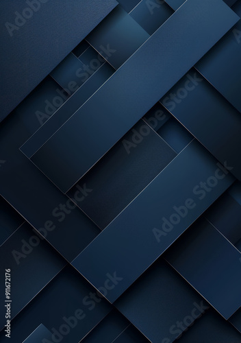 Dark blue gradient background with overlapping black geometric shapes and lines, sharp edges, and light reflections on metallic surfaces.