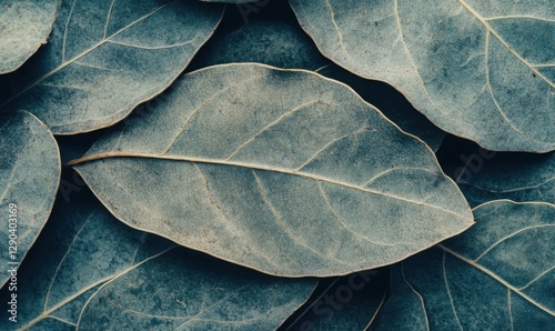Dark blue leaves background, nature texture, botanical pattern, design element
