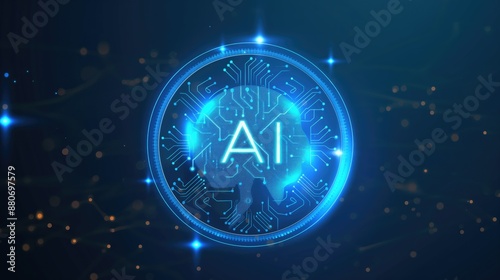 Dark blue minimalistic abstract artificial intelligence cloud computing and machine learning web technology background with copyspace