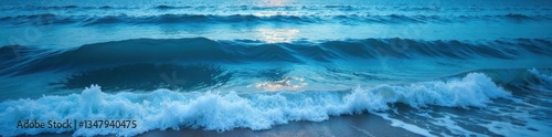 Dark blue ocean surface with waves gently lapping at the shore, ocean, sea