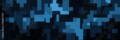 Dark blue pixelated pattern with varying shapes and shades creating a modern design aesthetic