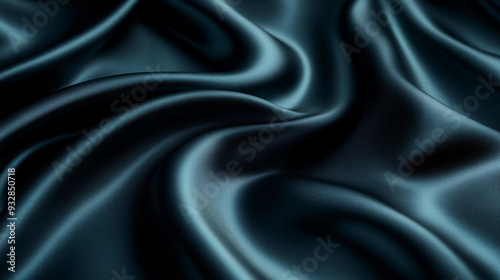 Dark blue satin fabric displays smooth, flowing folds, creating an elegant texture and reflective surface, inviting a tactile response