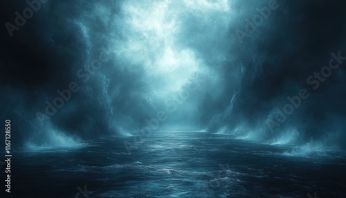 dark blue textured abstract cement wall studio room with smoke illuminated background for product display