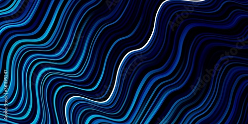 Dark BLUE vector background with curved lines. Bright sample with colorful bent lines, shapes. Best design for your posters, banners.
