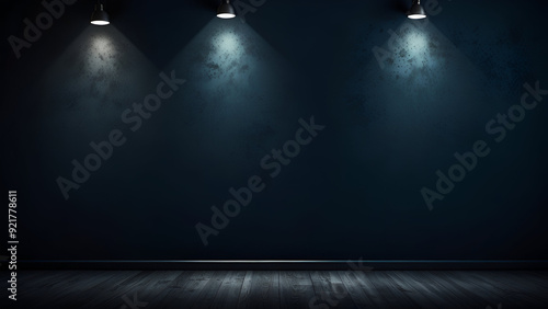 Dark Blue Wall Background with Spotlights Illuminating from Above.