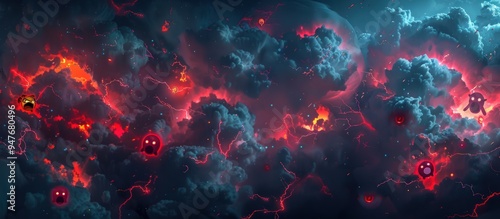 Dark, brooding storm clouds with sporadic flashes of red lightning and angry emojis, evoking a sense of rage.