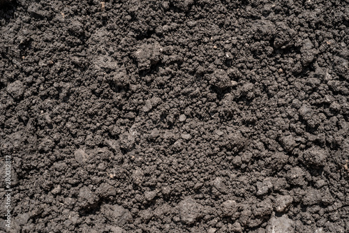 Dark brown crushed lowland peat, fertilizer and soil component - background for agriculture